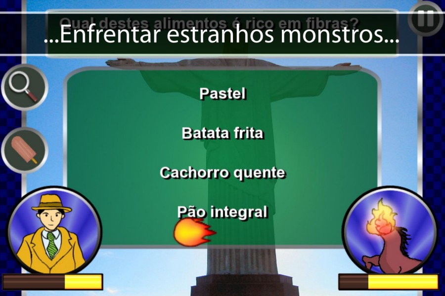 Mas não pense que vai ser moleza: alguns inimigos não vão esperar você responder, e vão lhe atacar de qualquer forma! Você precisa ser rápido no gatilho, e responder as perguntas o mais rápido possível antes que sua energia se esgote!