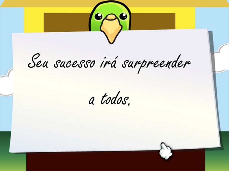 Deixe a música tocar, escute os sons do periquito verde - e quando você estiver pronto, clique na tela e o periquito vai tirar sua sorte!