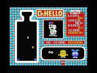 This game is a re-convertion from SG-1000 version of Dr.Hello, an old console from SEGA. This game was made in Korea for MSX, and later ported to SG-1000. Since the MSX version isn't dumped - I ported back the game from SG-1000 to MSX